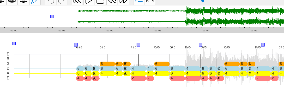 | F5 | Switch to edit mode. In this view, you can align your tablature with the music. | |