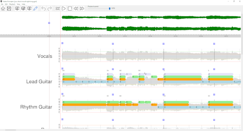 | Reimport. This function allows you to reimport the original tab file after modification outside of Guitar Prompter. If you still work on the file, you can modify the notes in .gp* file and then reimport the file. Guitar Prompter will keep all the alignments you previously did, as much as possible. | ||